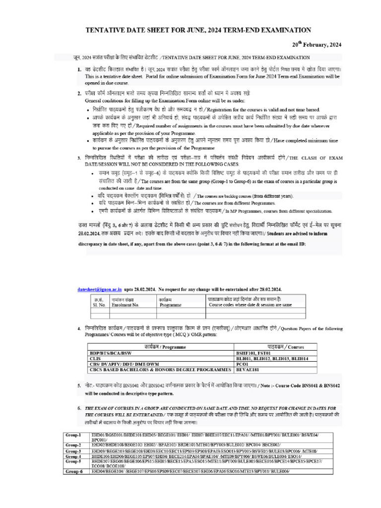 Ignou Final Date Sheet June 2024 Sydel Fanechka
