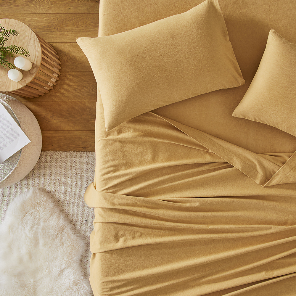 Flannelette Mustard Plain Dye Sheet Set Adairs
