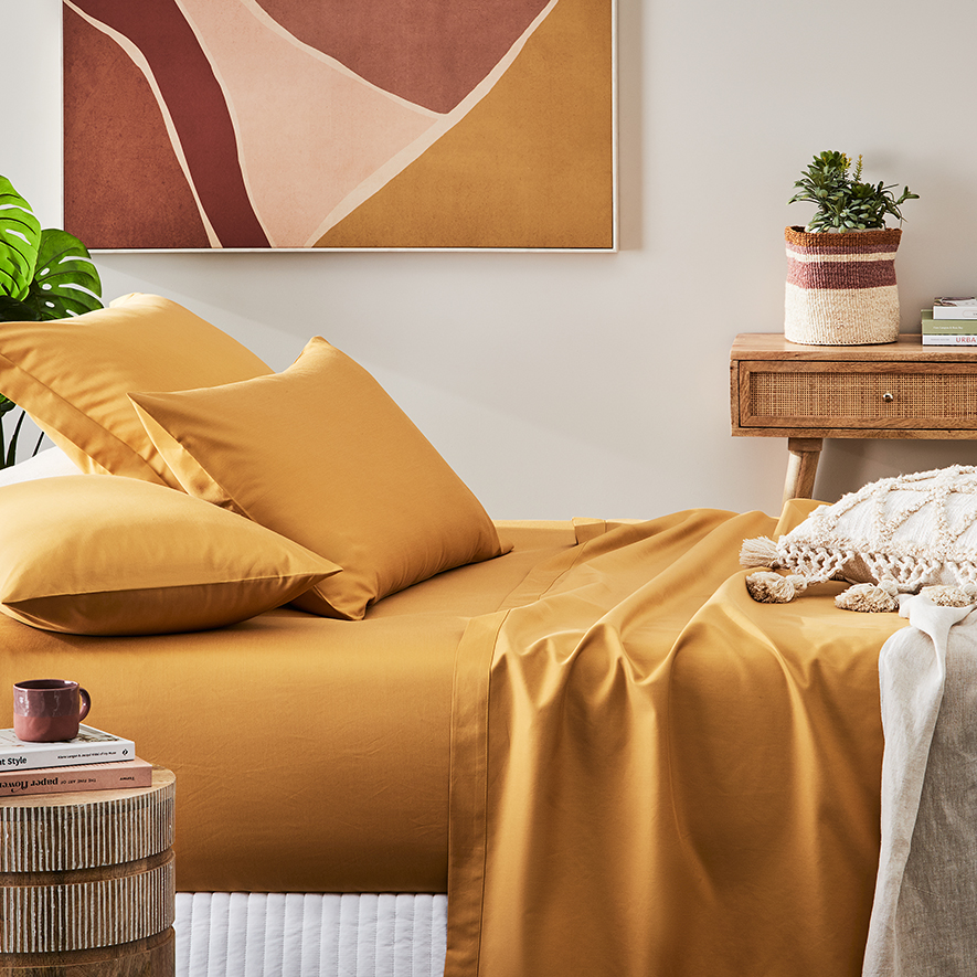 600TC Bamboo Cotton Honey Mustard Sheet Set Adairs