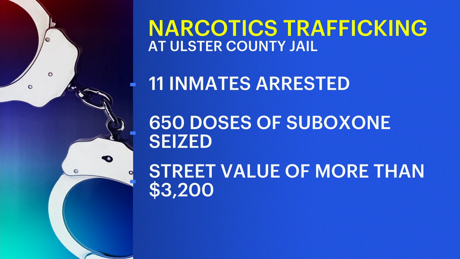 Ulster County Jail announces arrest of 11 inmates in narcotics